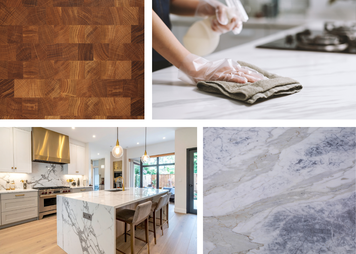 Butcher block counters are not nearly as durable as stone or quartz, but if cared for properly can last for decades. Because they are wood, they are more prone to dents, scratches and water damage.